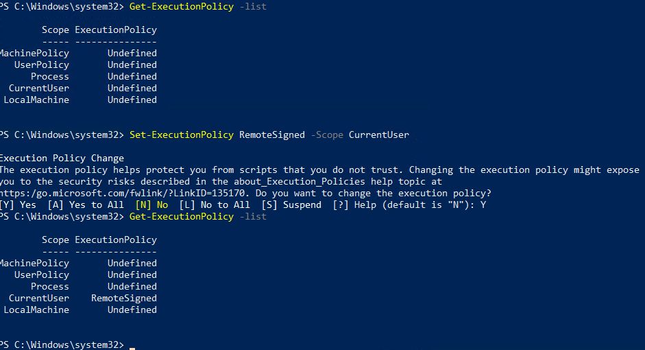 Set-ExecutionPolicy RemoteSigned -Scope CurrentUser
